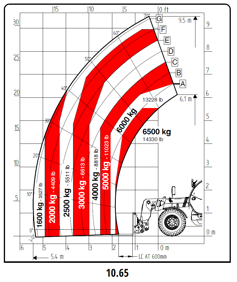 Maximális vízszintes gémkinyúlás: 5,4 m