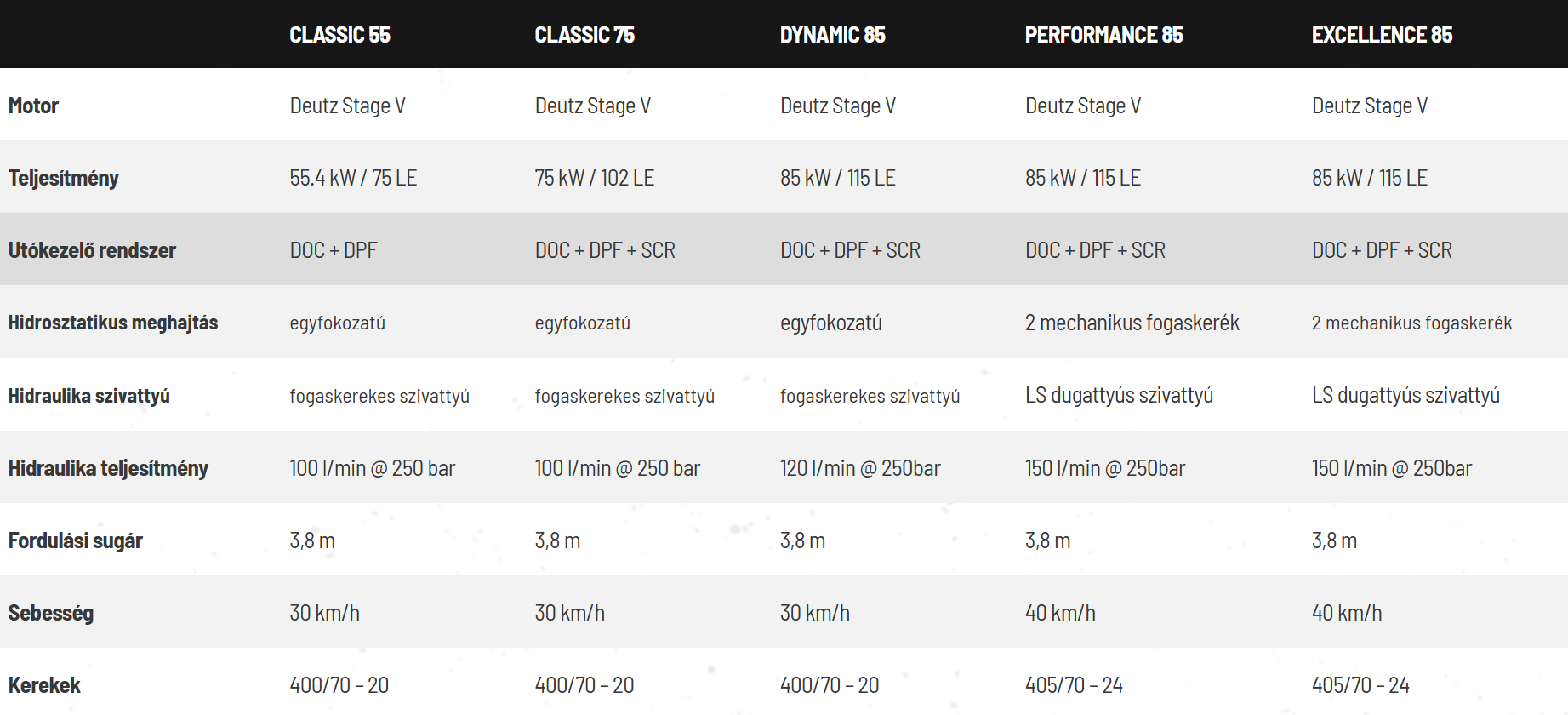 Classic 75 / Dynamic 85: Deutz 75 kW / 102 LE vagy 85 kW / 115 LE