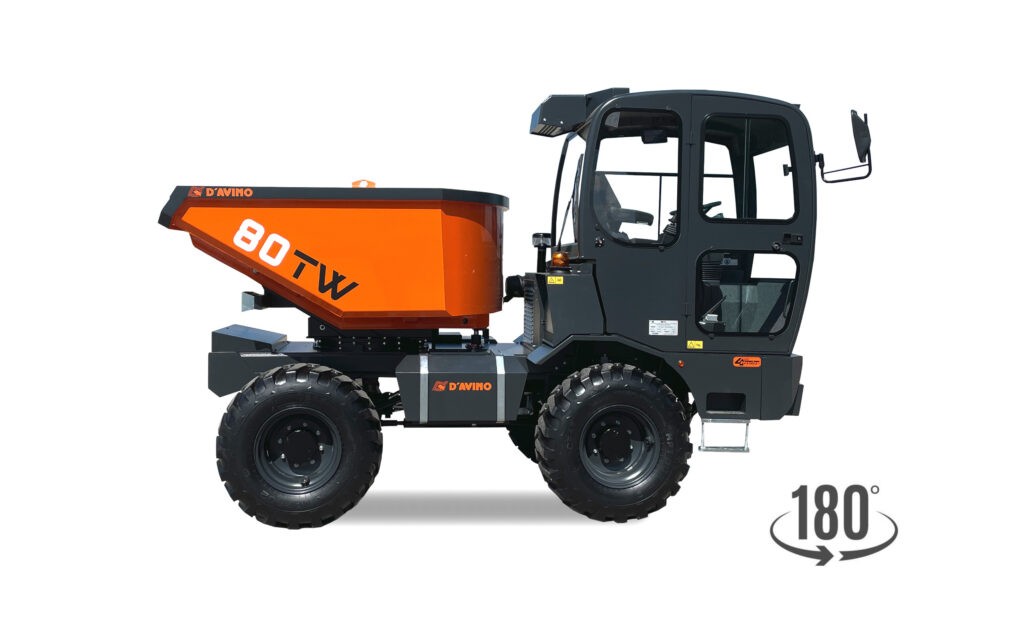 D’Avino 80TW – Kompakt dömper, forgatható vezetőállással és oldalra billenthető platóval